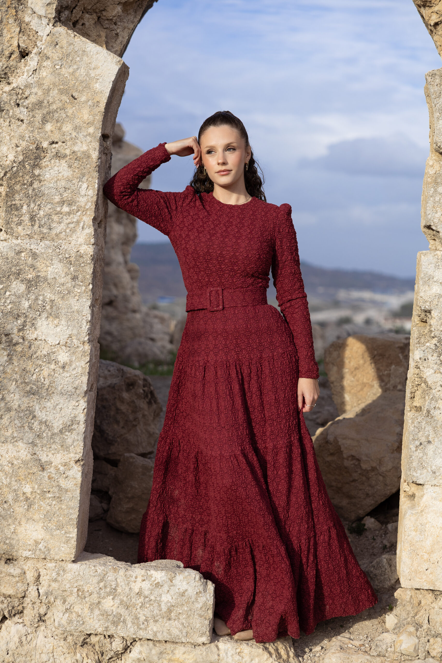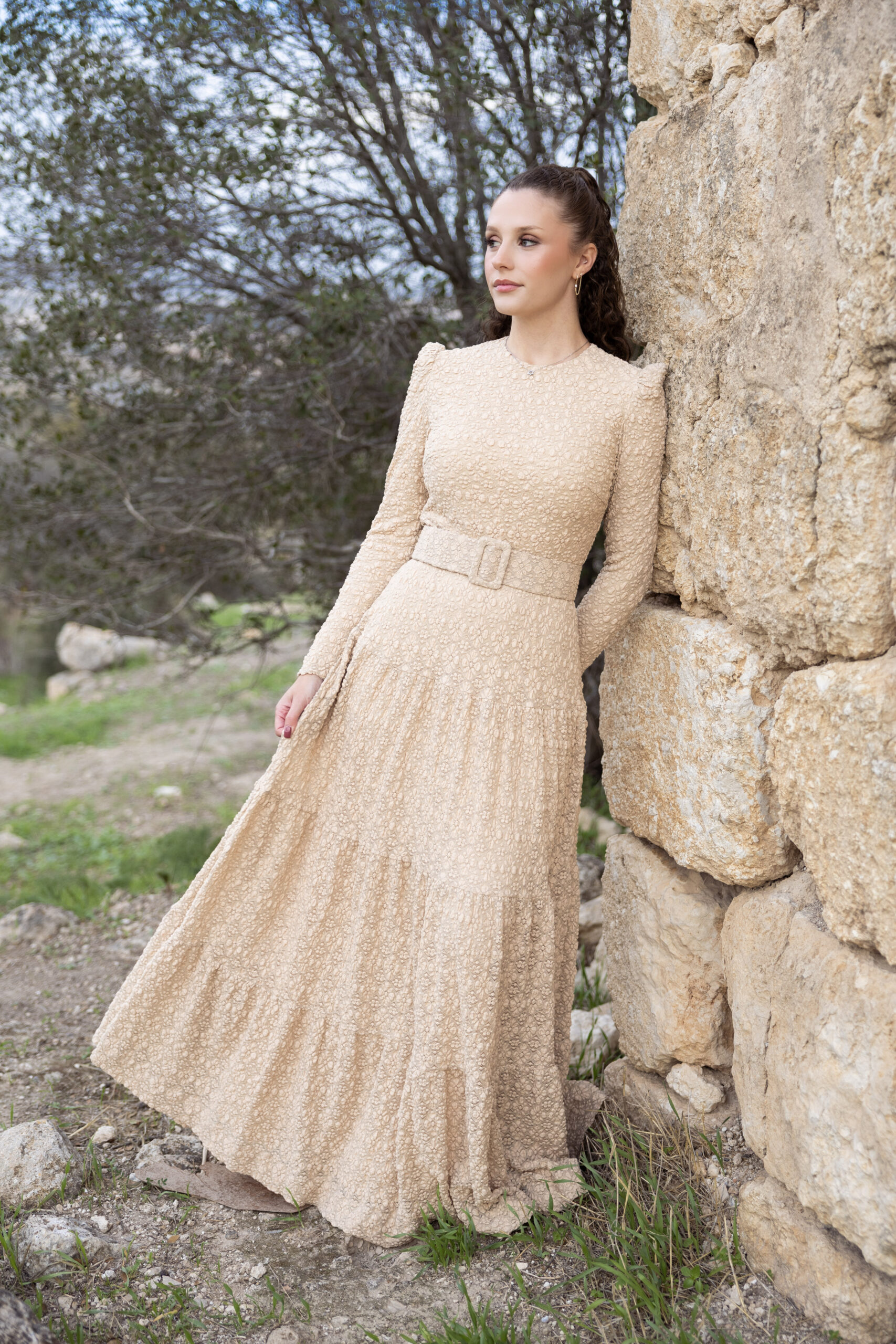 שמלה מרשימה מבד נעים עם טקסטורה עדינה ומיוחדת.