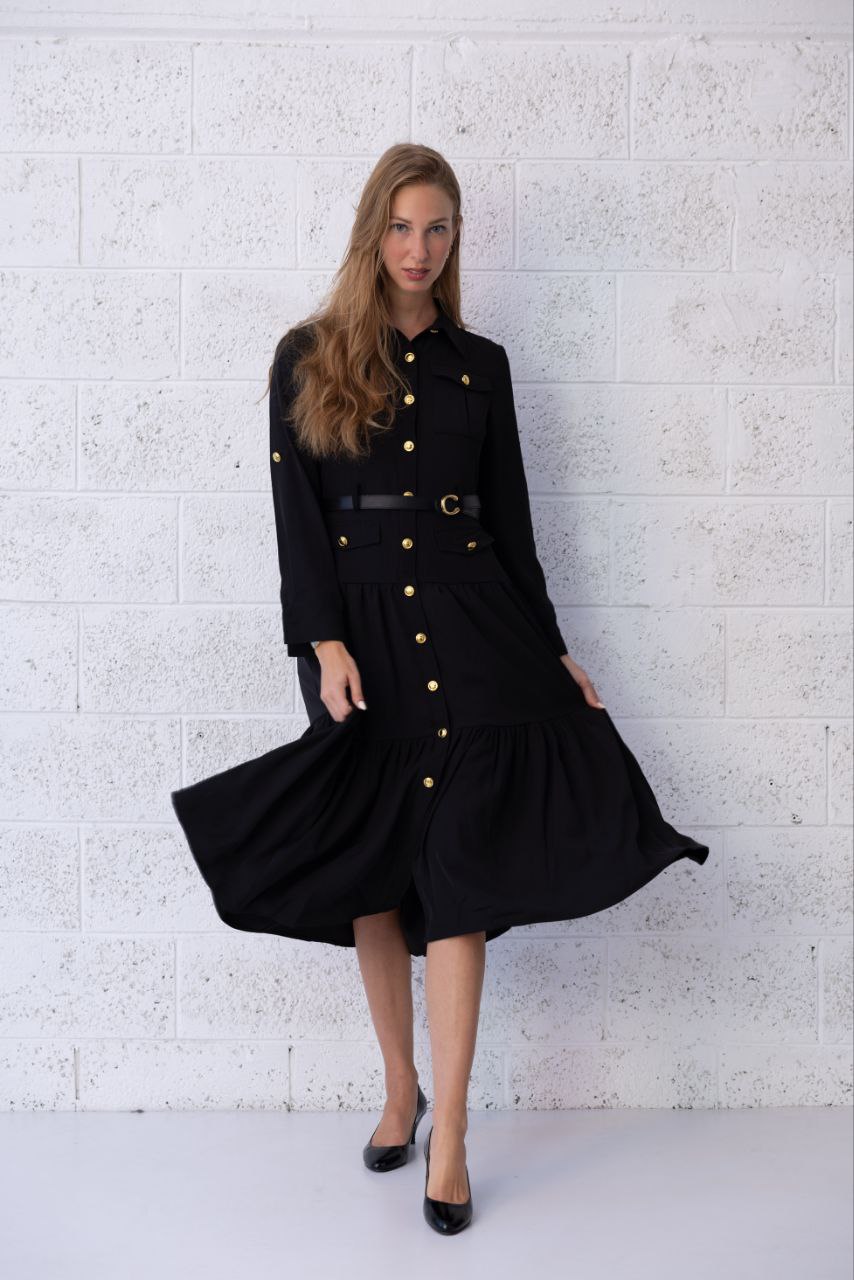 אל תפספסי את ההזדמנות להוסיף שמלה שחורה עם כפתורים וחגורה לארון שלך – פריט עיצובי שהוא גם אופנתי, גם פרקטי וגם איכותי במיוחד.